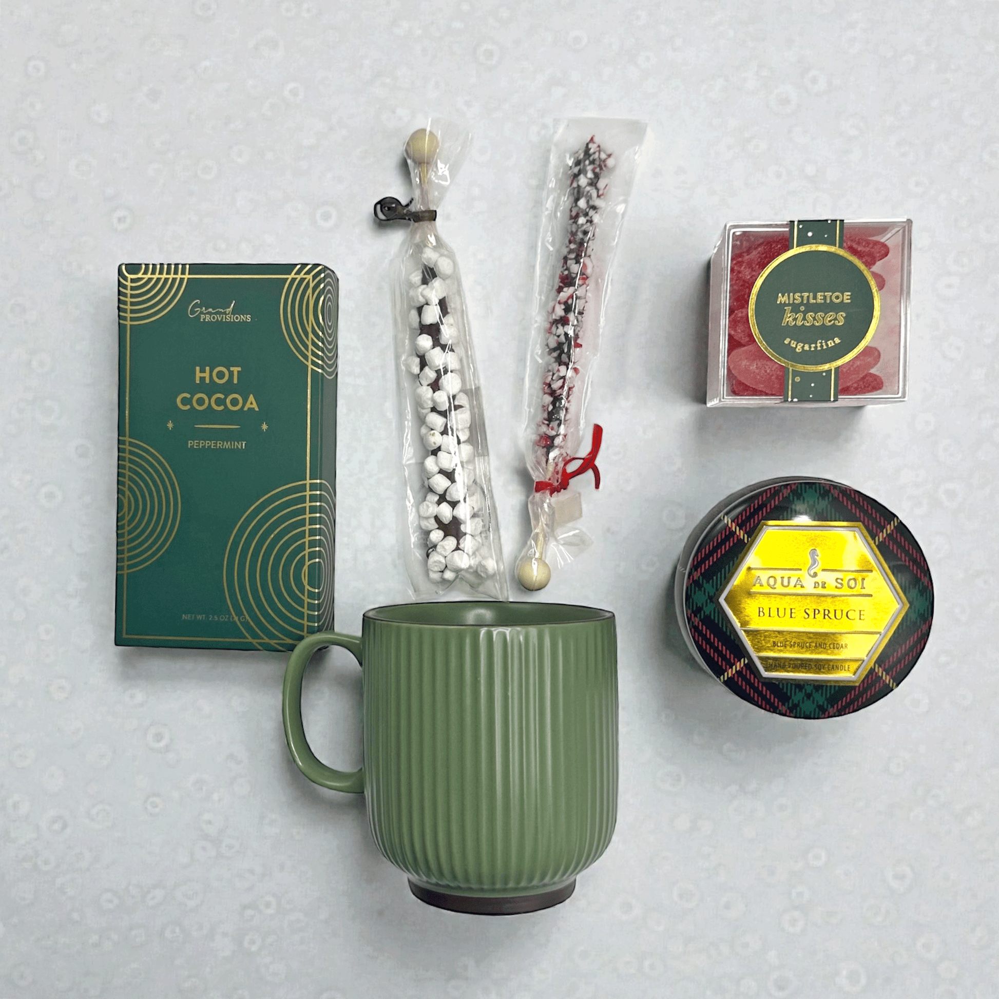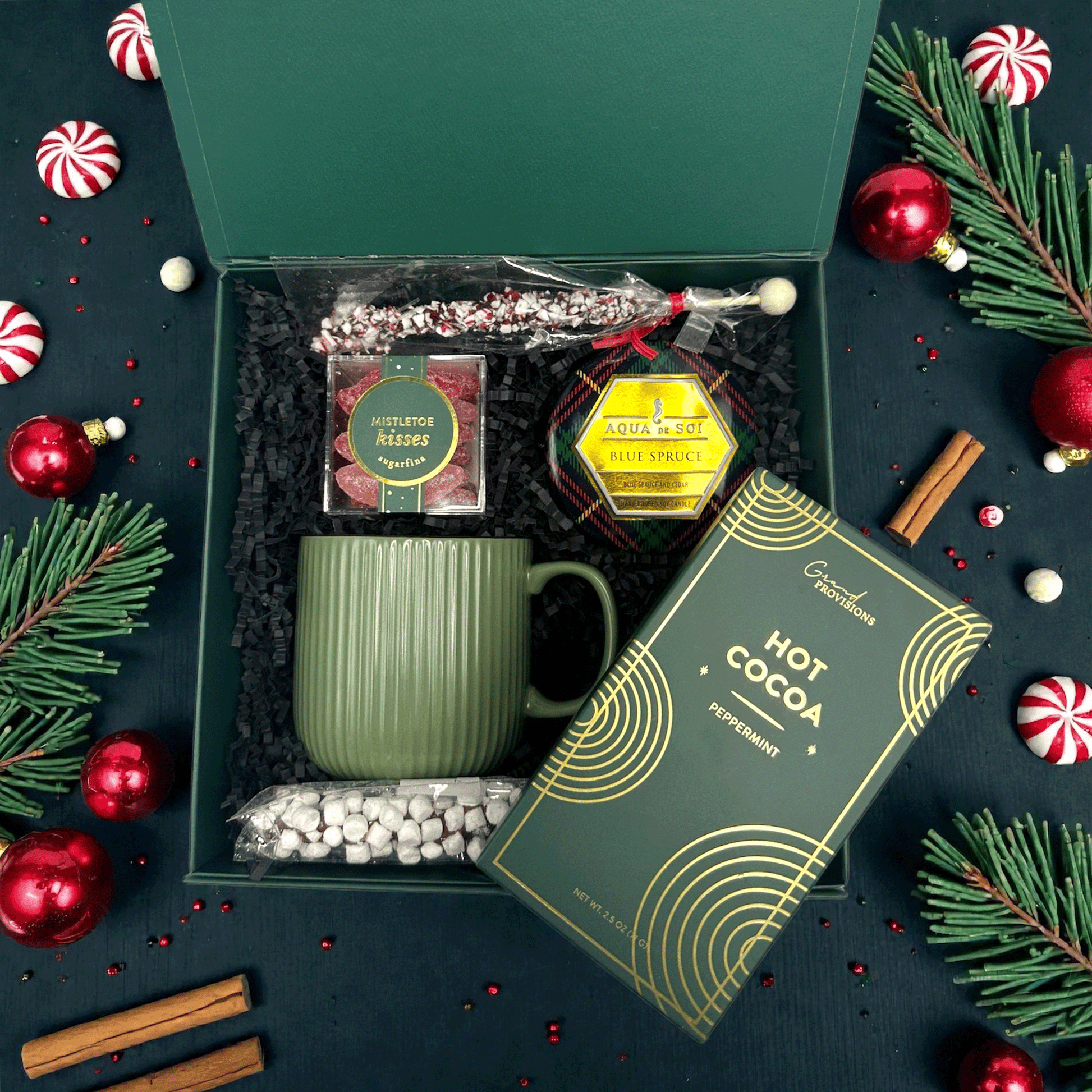 Get into the holiday spirit with our Peppermint Dreams gift box. This cozy box includes a selection of peppermint-infused products to soothe and invigorate your senses. Along with mistletoe gummy kisses as a sweet treat and the forest-inspired fragrance of blue spruce, offering a distinguished sensory experience.