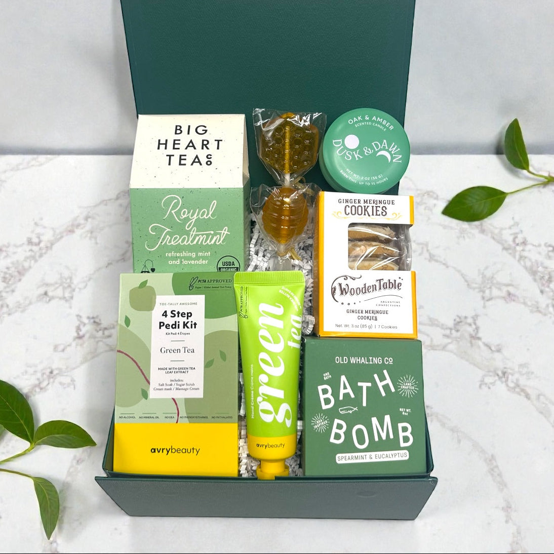 Treat yourself to an exceptional wellness experience with this thoughtfully designed collection. Blending green tea and mint-infused skincare essentials with complementary premium tea and gourmet cookies, this box offers a holistic approach to relaxation and self-indulgence. Perfect for those who appreciate quality ingredients and curated comfort.